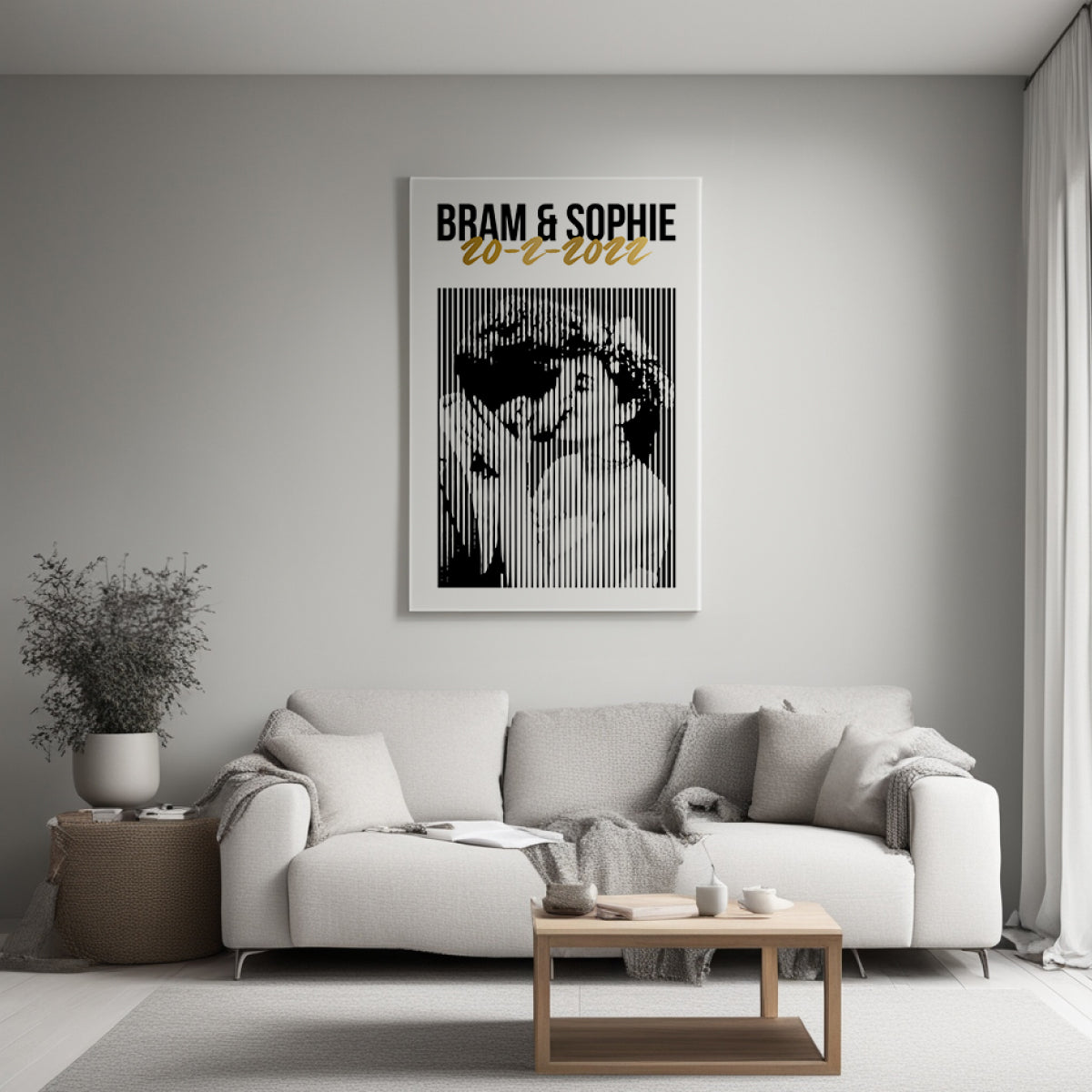 Herinner jij je dat ene moment nog? Vaak weet je nog precies waar en met wie je was. Zo’n bijzondere herinnering verdient meer dan alleen een plek in je hoofd. Met Moment in Stripes brengen we jouw memorabele moment tot leven in een uniek kunstwerk. Uit onze uitgebreide collectie – of met een ontwerp op maat – vind je altijd een stijl en formaat dat perfect past bij jouw dierbare herinnering en interieur.