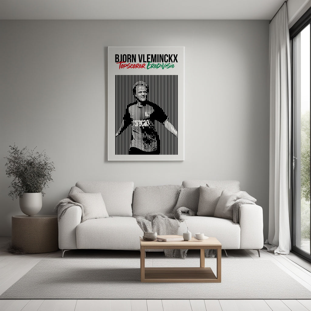 Breng een iconisch moment in de sportgeschiedenis tot leven met deze unieke kunstplaat uit de "Moment in Stripes" collectie. Cultheld Björn Vleminckx, de man van de verre inworp, scoorde in seizoen 2010/11 23 doelpunten. Het was genoeg om de topscoorderstitel van de Eredivisie te veroveren. Een uniek ontwerp voor een unieke prestatie van de Belg, die hij nooit meer in zijn carrière meer wist te evenaren.