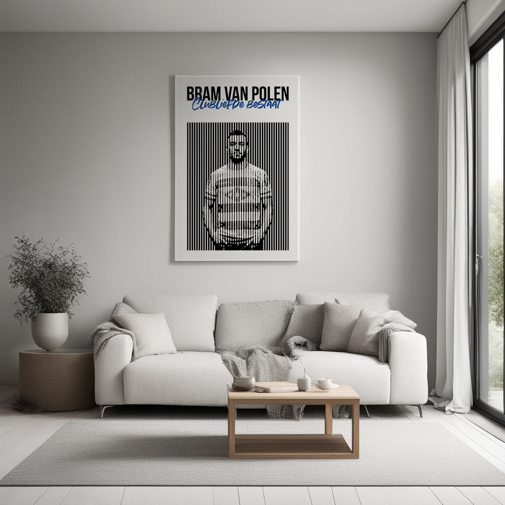 Breng een iconisch moment in de sportgeschiedenis tot leven met deze unieke kunstplaat uit de "Moment in Stripes" collectie. Dit ontwerp brengt een ode aan cultheld Bram van Polen, die geliefd werd bij het Nederlandse voetbalpubliek dankzij zijn excentrieke uitspraken en onvoorwaardelijke clubliefde voor PEC Zwolle. Hij speelde uiteindelijk 454 wedstrijden voor de club.