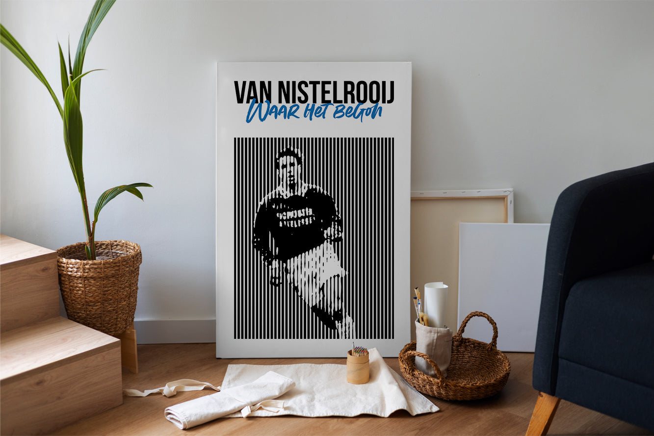 Breng een iconisch moment in de sportgeschiedenis tot leven met deze unieke kunstplaat uit de "Moment in Stripes" collectie. Deze kunstplaat brengt je terug naar de roots van Ruud van Nistelrooy, toen hij als jonge aanvaller de kleuren van FC Den Bosch droeg. Het beeld herinnert ons aan de belofte en vastberadenheid van een talent dat later uitgroeide tot een legende.